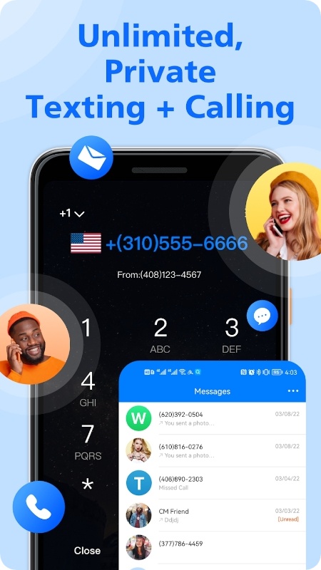 Let’s start with the basics:the app gives you an extra number,facilitating text and calls while safeguarding your contact info.And the coolest part?It’s free!No more worrying about huge bills or awkward interactions with unwanted contacts.